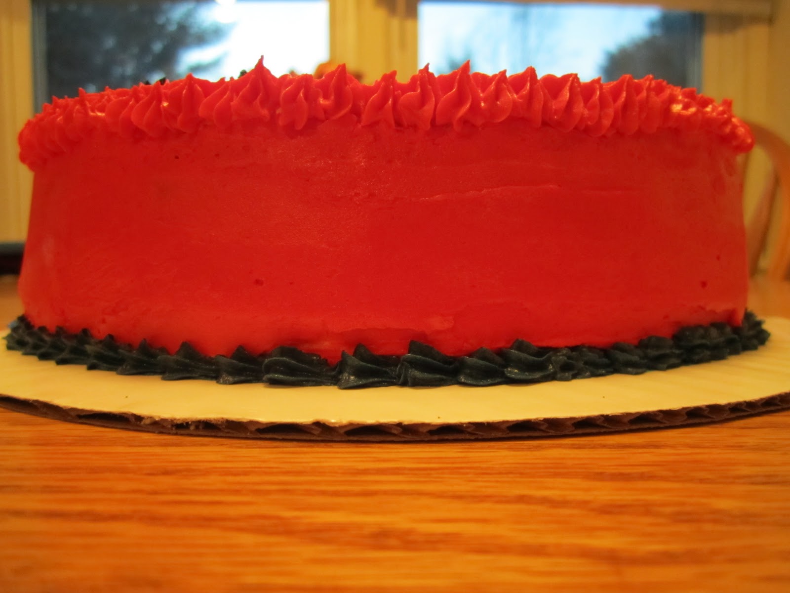 For a friend's birthday, I was asked to make a birthday cake inspired by the New York Yankees. This cake is a vanilla cake covered in homemade buttercream. I handcolored the blue and red buttercream and drew the infamous logo on top.